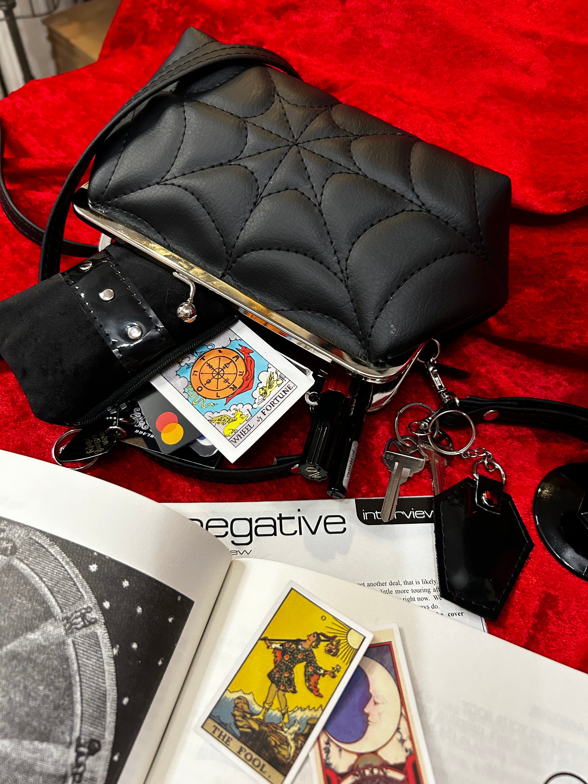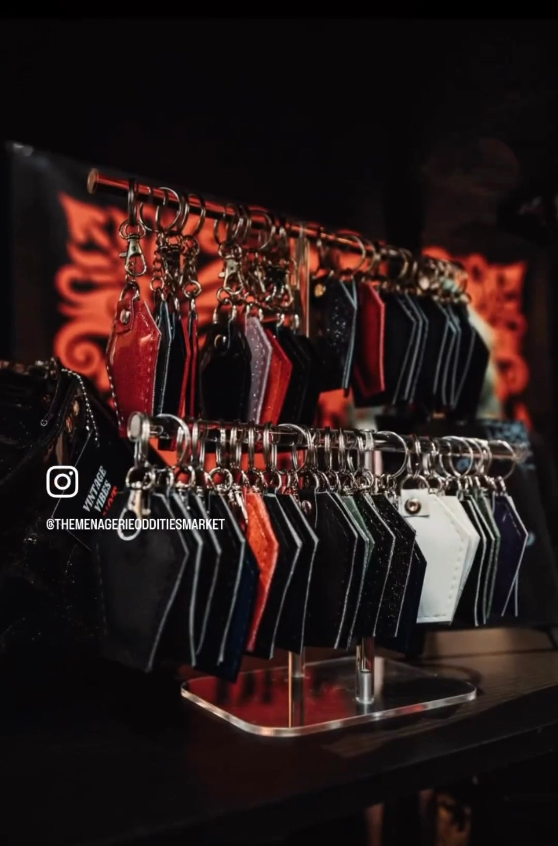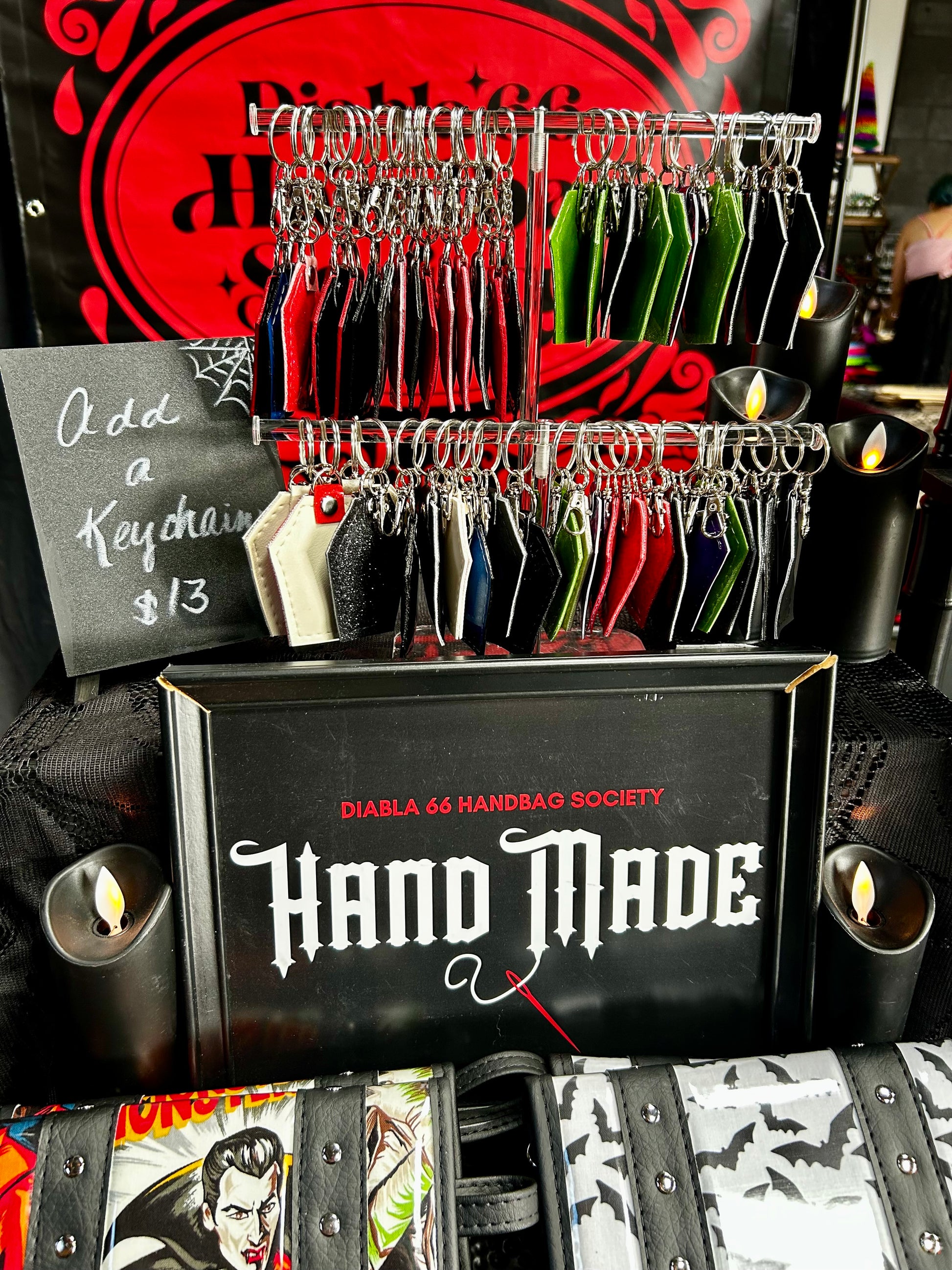 This undeadly accessory is handmade from our handbag production scraps, just a small part to help the environment and keep a little textile trash out of landfills. Who knows what delightfully spooky surprises await you - it's a mystery keyfob, chosen at random just for you! Be part of the re-animation movement and snatch up one of these bad boys today!