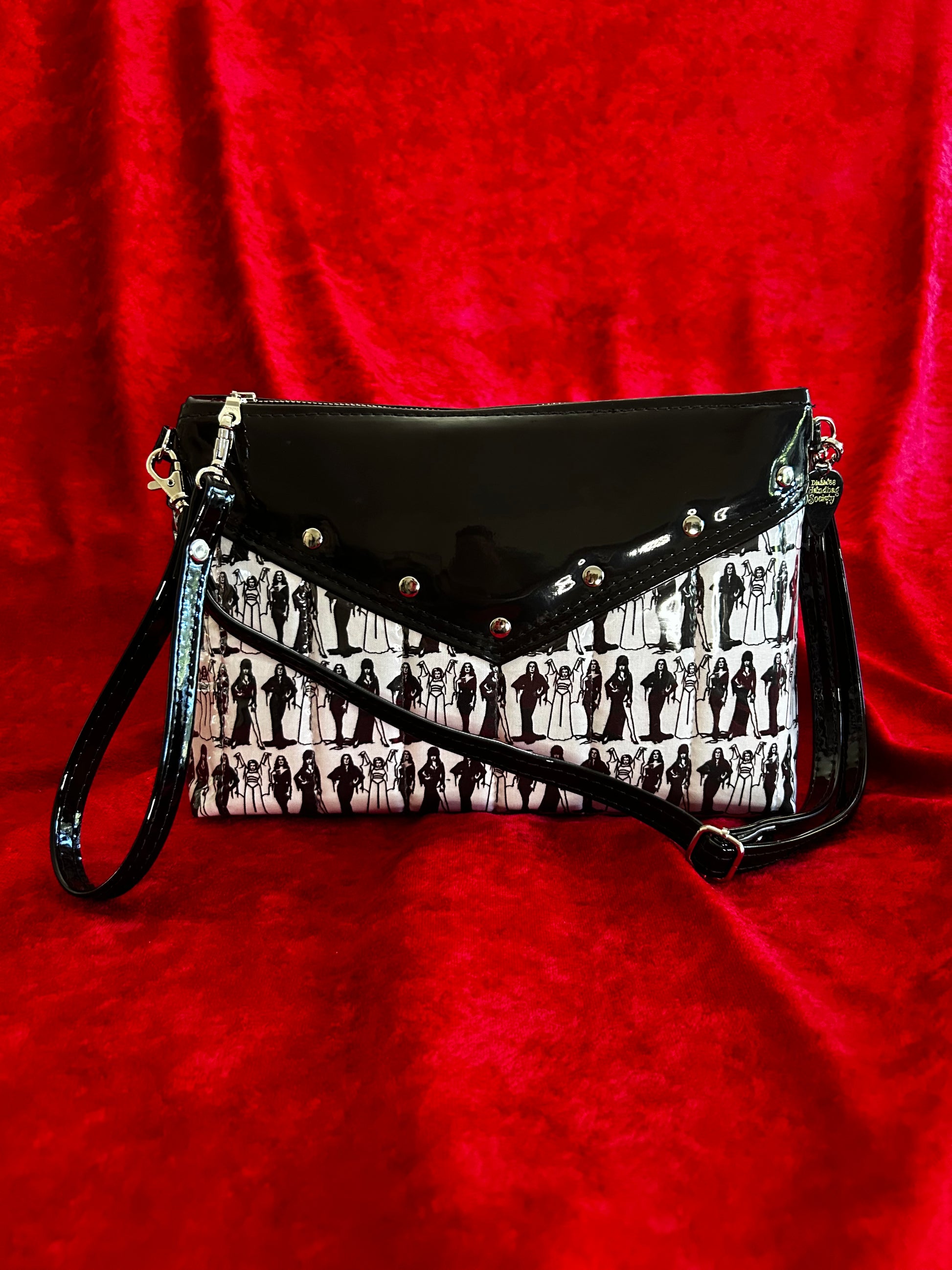 Treat yourself to the ultimate goth girl accessory with our Ghoul Gang Crossbody! This sleek crossbody bag boasts plenty of room to stash all your gothic goodies, and its metal zipper closure will keep everything secure. Perfect for year-round accessorizing for those spooky babes in your life -- buy one for you AND your best ghoulfriend!🦇