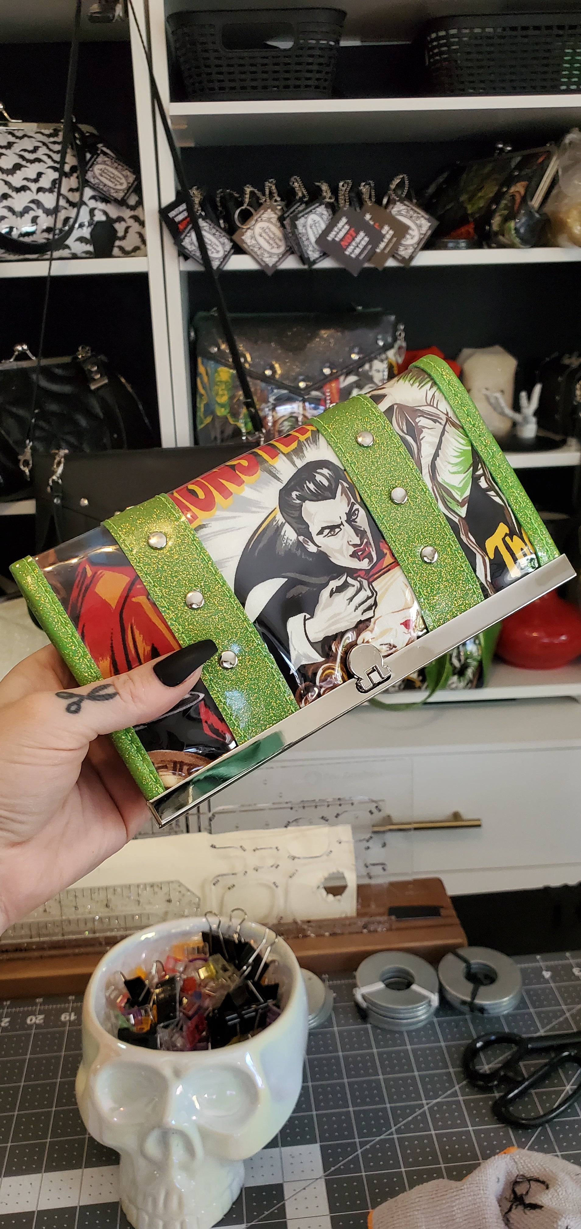 Treat yourself to a monstrously awesome accessory with the Monster Movie Wallet! Crafted with a bright and spooky classic monster movie print, and shimmery lime green sparkle, this best-selling bi-fold wallet will hold all your essentials with six card slots, two slip pockets, and an inside zipper pocket. Keep your ghoulish items safe and stylish, and join the legions of ghouls who are already obsessed with it!