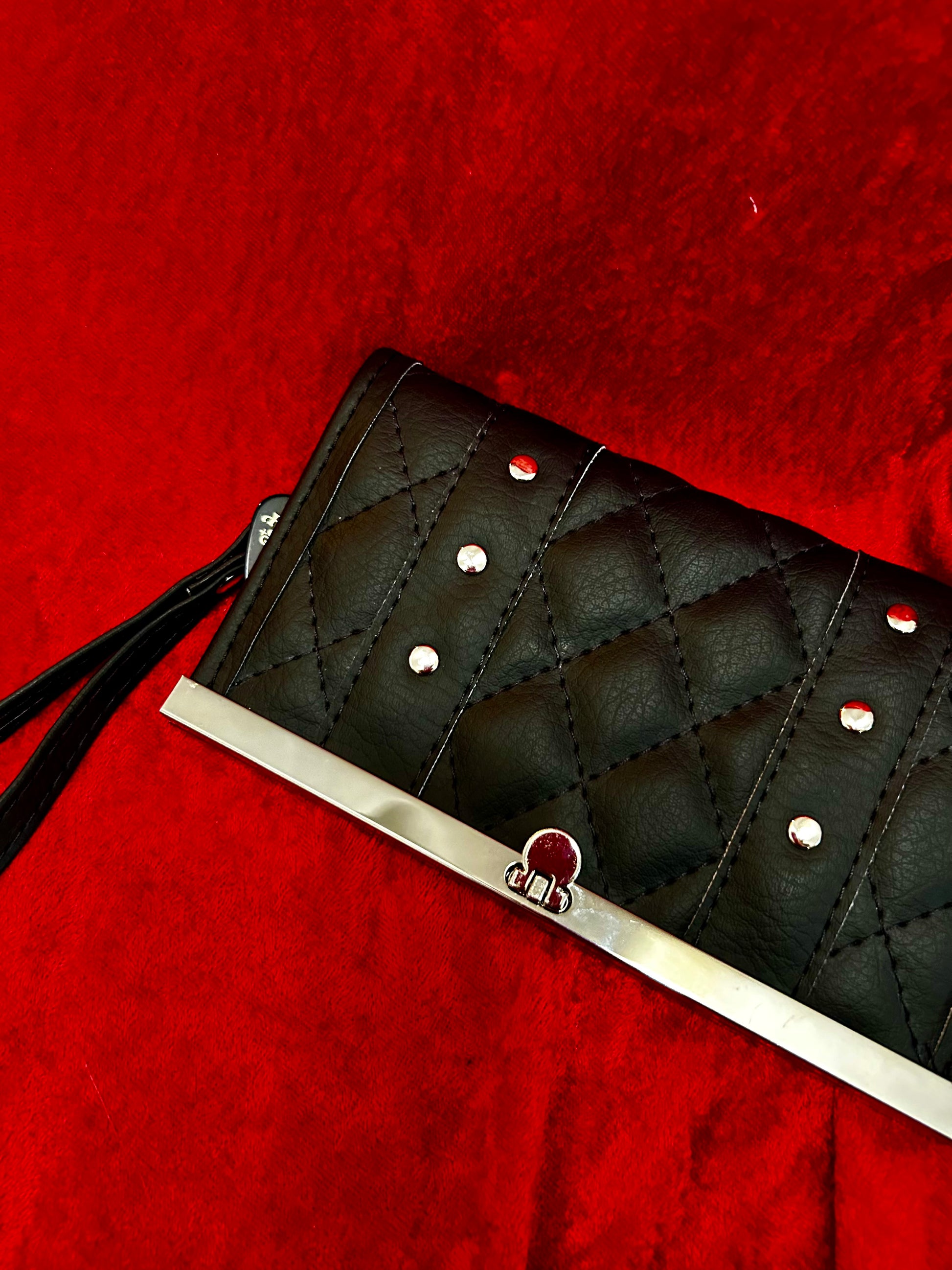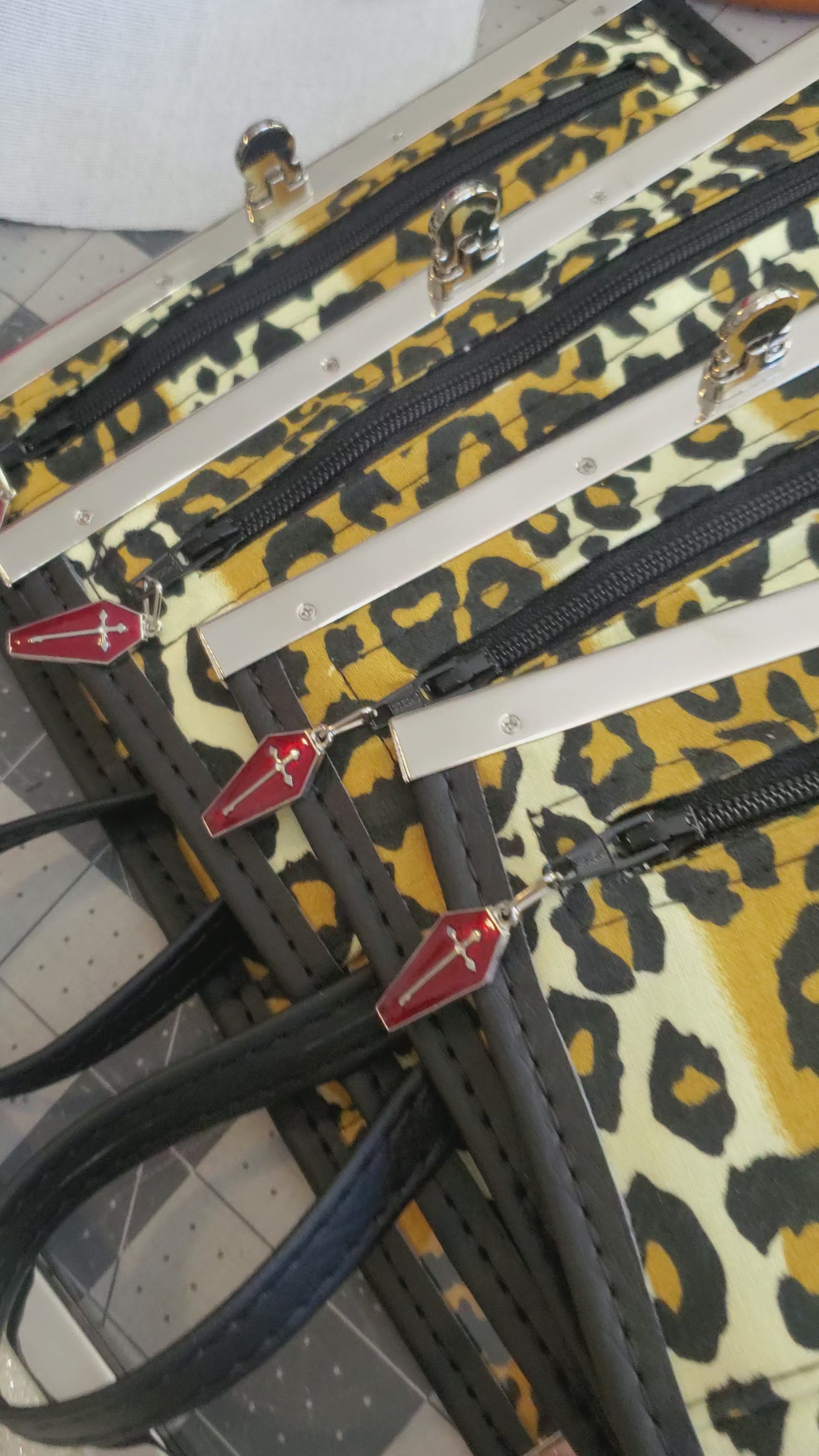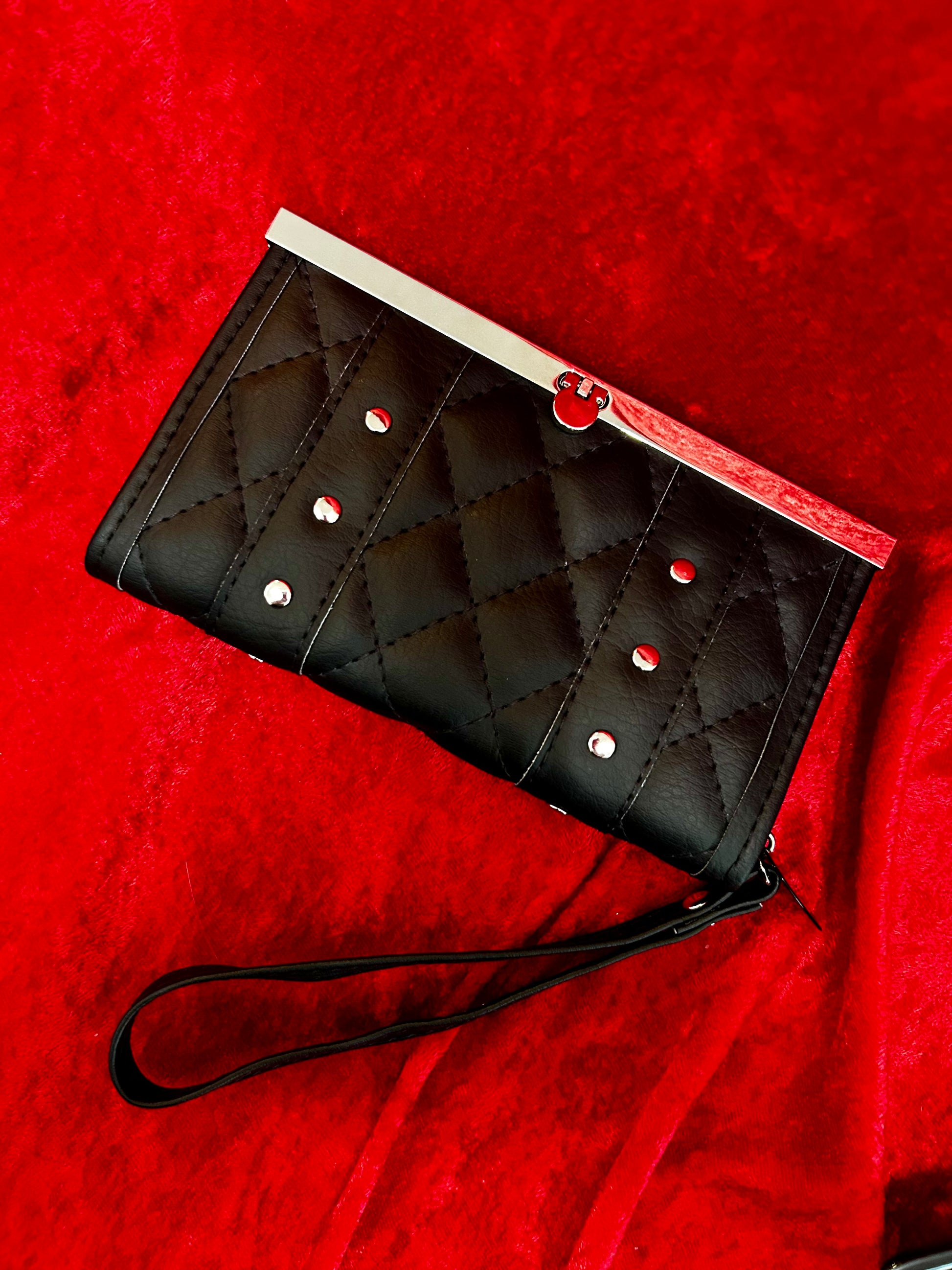 Stay one step ahead of the dead with our Necromancy Wallet. Crafted with luxe black matte vegan leather, sleek silver tone hardware, and your leopard lining, this bi-fold is perfect for keeping your essentials safe from any pesky ghouls. And 'cause you always gotta look good, the framed clasp closure and diamond top-stitching add that extra touch of sophistication and style. Now you too can join the club of the baddest of the bad-- grab one and put it in your Diabla 66 purse today!